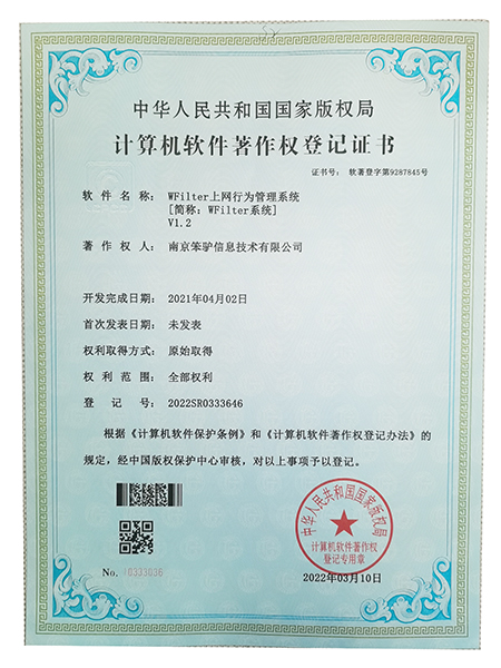公司的代表產品(如:WFilter NGF、WFilter ICF、WSG上網行為管理網關)立足全球市場,支持簡體中文、英文等多種語言,用戶遍布亞洲、北美和歐洲市場,并且以強大的功能、易于操作的設計理念和完善的服務獲得了用戶的一致好評。 除商業產品外,我公司還開發了WProxy免費代理服務器軟件等免費軟件;并且贊助了port-mirroring等開源項目。