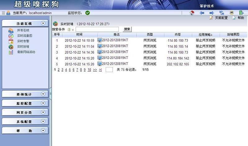 同時,您可以在超級嗅探狗的當(dāng)前在線->實時封堵中,看到封堵信息。具體如下圖所示: