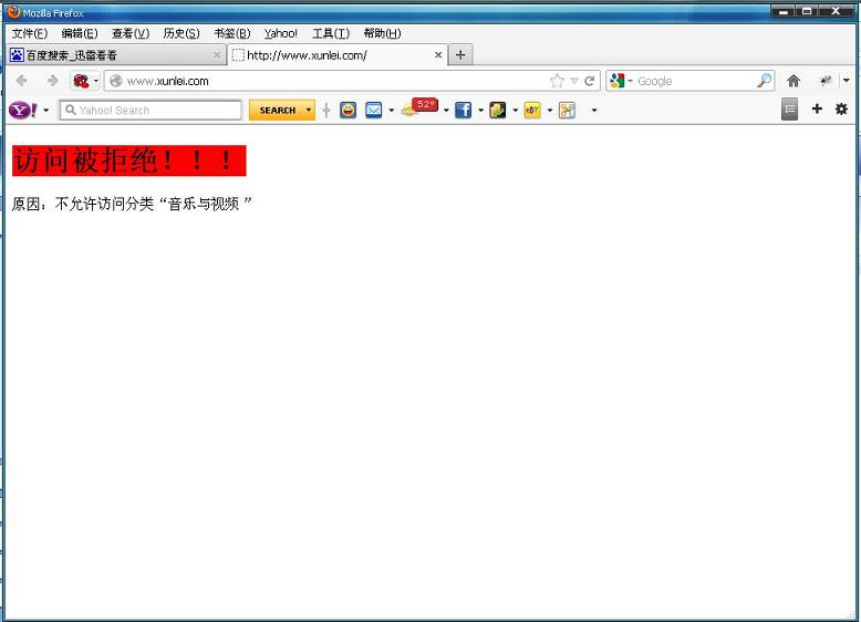當(dāng)被實施該封堵的電腦訪問您所禁止的視頻網(wǎng)站時,會出現(xiàn)以下封堵頁面: