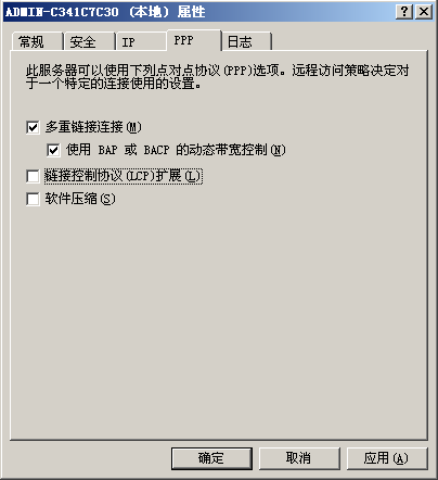 進(jìn)入到路由和遠(yuǎn)程訪問(wèn),選擇服務(wù)器,右擊屬性,進(jìn)入到PPP選項(xiàng)卡,取消軟件壓縮和LCP,并應(yīng)用。
