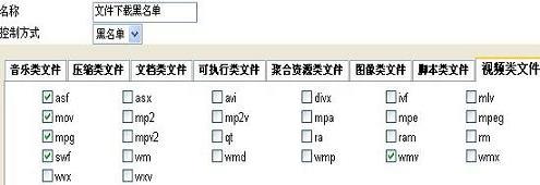 超級嗅探狗3.2版對文件下載的管理更加人性化,3.2版中把常見文件類型分為9大類,用戶只需要選擇需要禁止的分類即可,而無需知道具體的擴展名,如下圖。