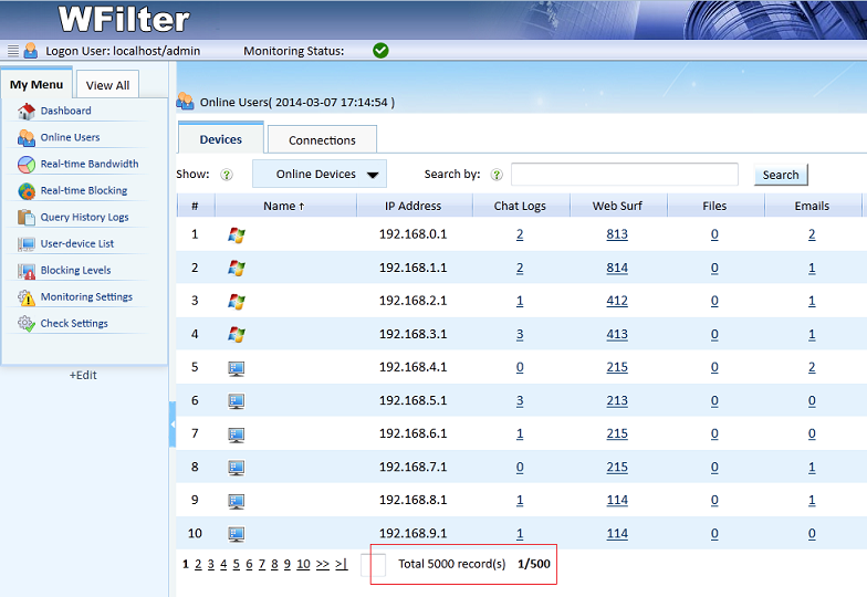 WFilter 4.1版本壓力測(cè)試播報(bào):監(jiān)控5000臺(tái)毫無(wú)壓力