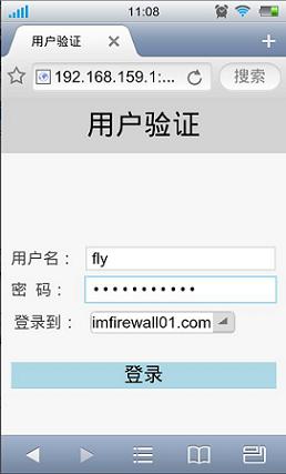 只有進行web驗證后的手機才可以上網。打開瀏覽器,會自動彈出用戶驗證頁面,輸入域用戶名,密碼。如圖示:
