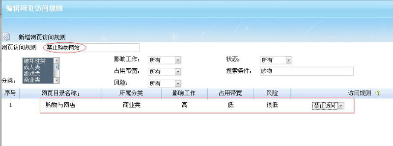 2.編輯網(wǎng)頁(yè)訪(fǎng)問(wèn)規(guī)則,禁止“購(gòu)物與網(wǎng)店分類(lèi)”并保存,如下圖所示: