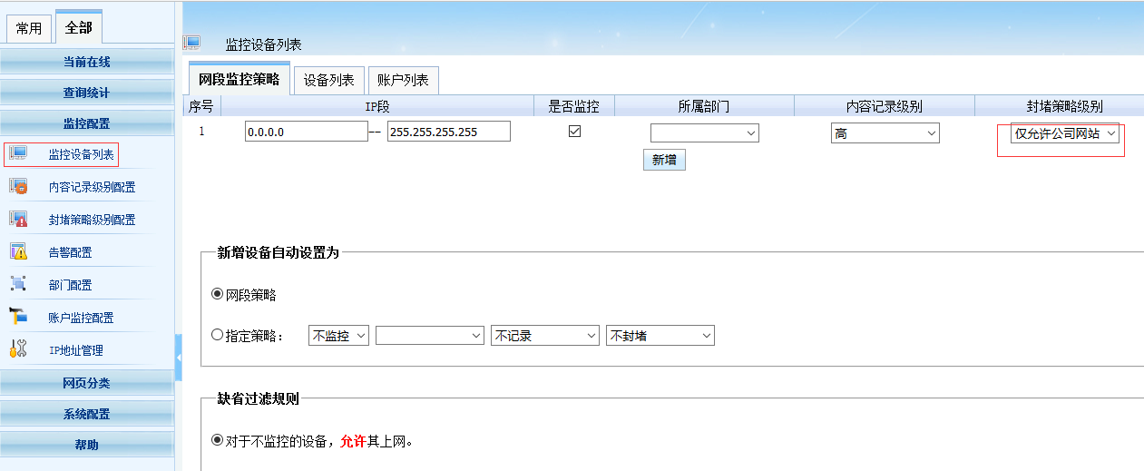 1. 在“監控設備列表”的“設備列表”中,給每個設備設置一個比較嚴格的策略。