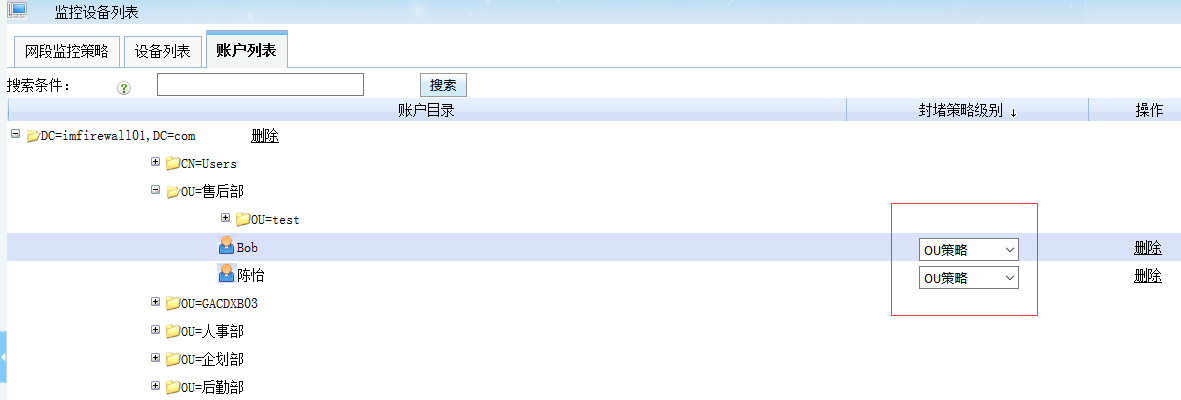 2. 在”監控設備列表“的”賬號列表“中,給賬號設置真正的上網策略。