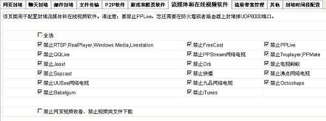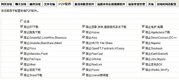2. 禁止帶寬耗用比較多的協議,如:P2P、在線視頻、下載等。