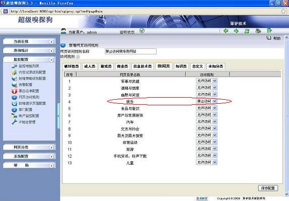 2. 超級嗅探狗具有強大的網址庫,可以自動分析網站的性質,禁止開心網等同類網站,你也可以通過禁止娛樂分類來達到: