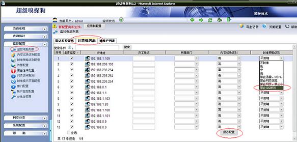 2. 在“監(jiān)控配置--> 監(jiān)控電腦列表--> 計算機列表”中應(yīng)用封堵規(guī)則,如下圖所示:
