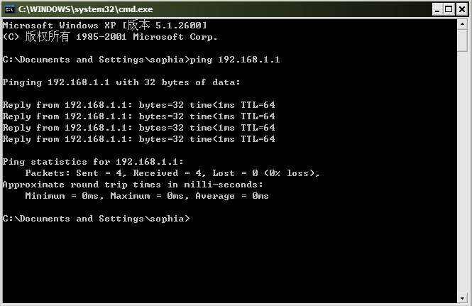 2.利用ping命令,ping下網(wǎng)關(guān)以刷新ARP表(本例中網(wǎng)關(guān)為192.168.1.1)。