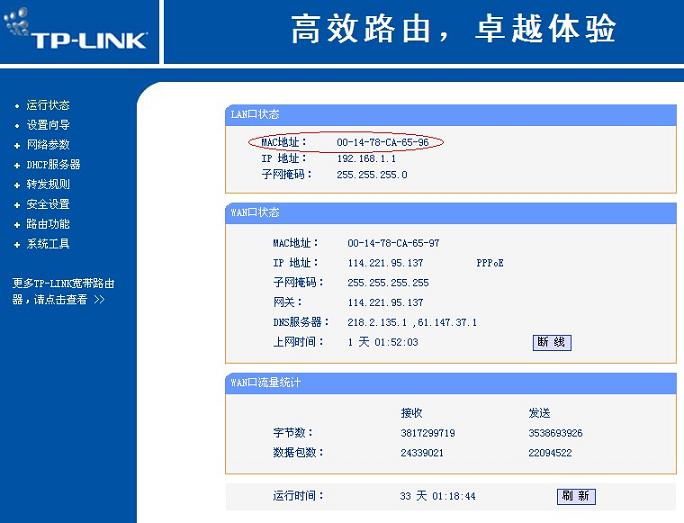 4.然后打開路由器,查看網(wǎng)關(guān)的MAC地址。
