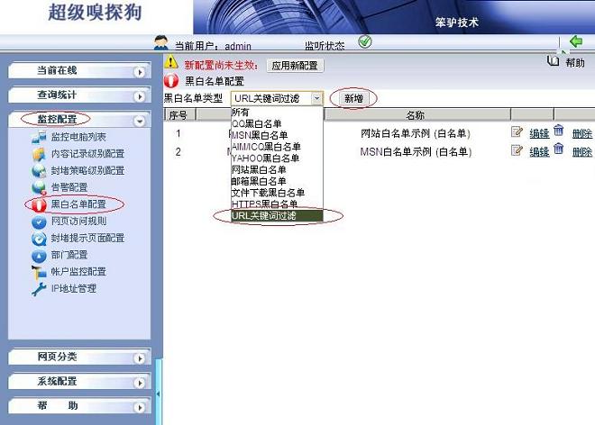 下面本文將介紹怎樣通過超級嗅探狗網絡監控軟件來禁止好友買賣、游戲基地、搶車位。 1.在“監控配置-- > 黑白名單配置配置”新增一個URL關鍵詞過濾,勾選上“啟用URL關鍵詞過濾”,如圖所示: [ALIGN-CENTER]