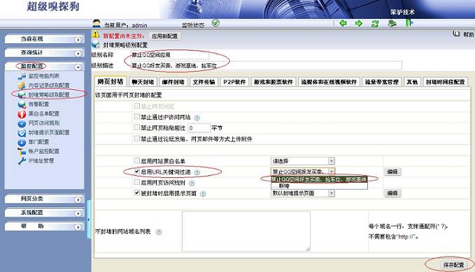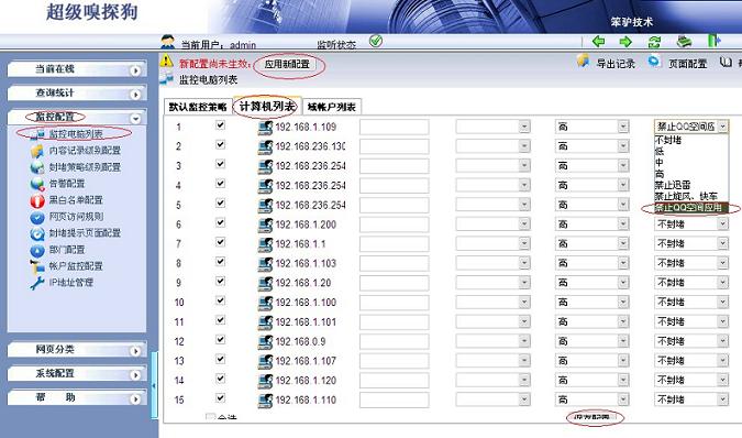 6.在“監控配置-- >監控電腦列表”中應用封堵策略,如下圖所示: