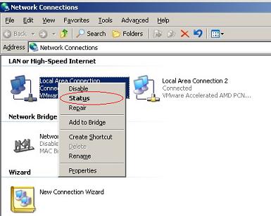 - In "Network Connections", check the "status" of the monitoring adapter: