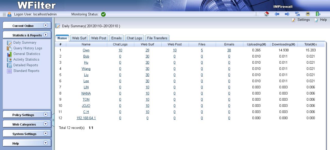 Home /  WFilter Screenshots - Bandwidth monitoring