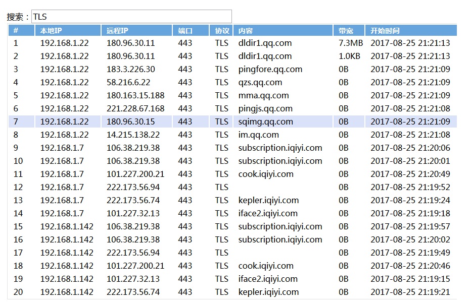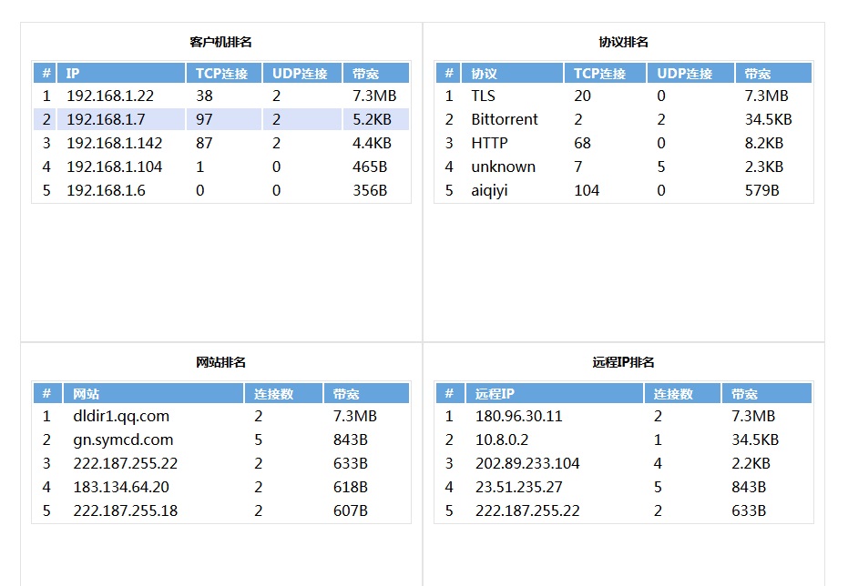 分析在線鏈接的IP、協(xié)議和帶寬分布。 |