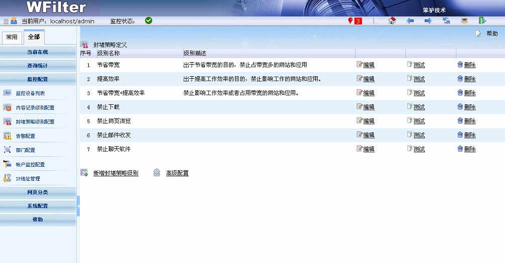 • 可以對每個員工設置不同的上網級別,規定每個員工的網絡使用權限等。
