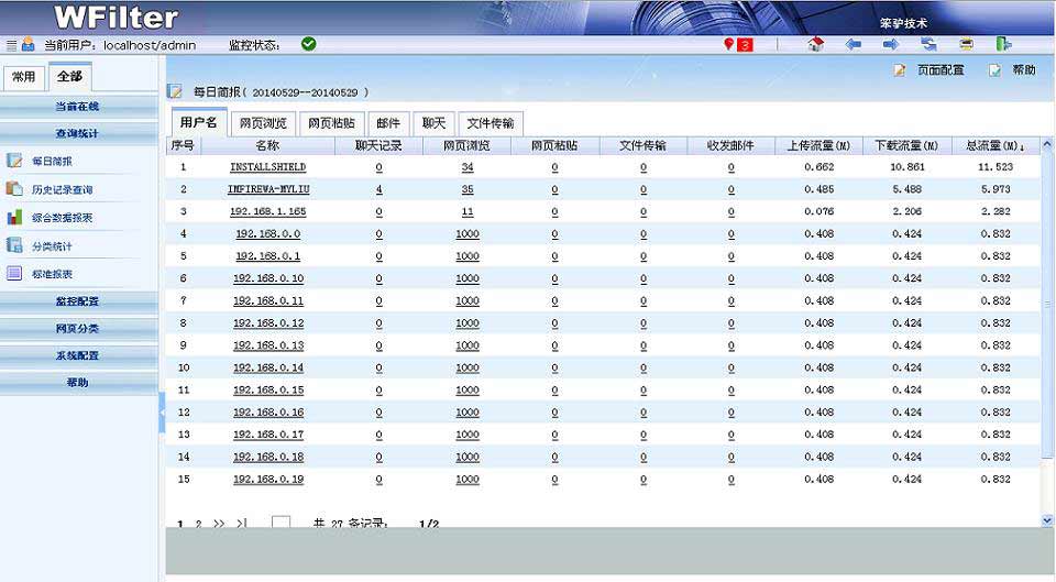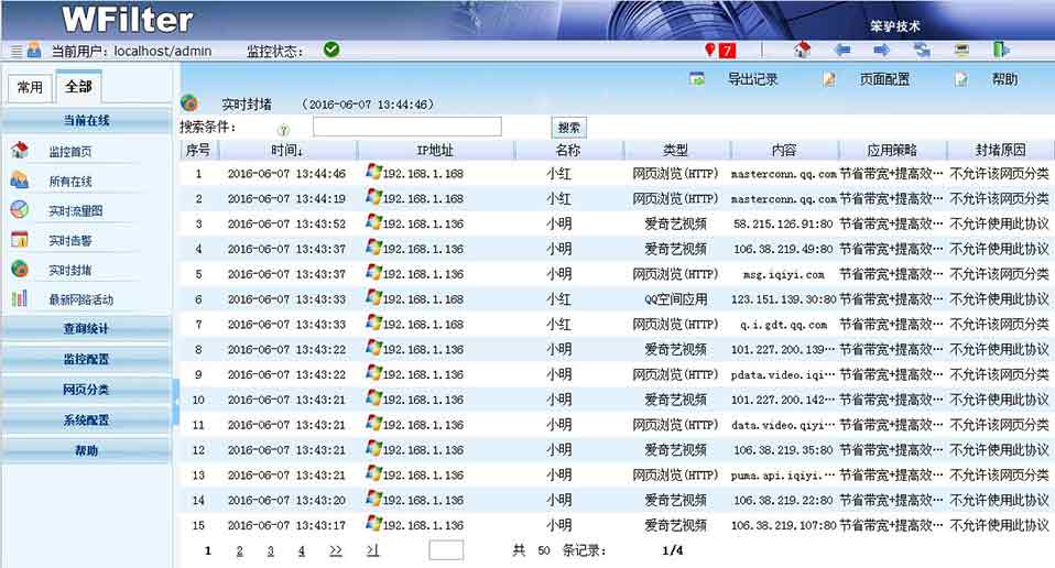 WFilter(超級嗅探狗) - Windows版本的企業級局域網監控管理軟件。