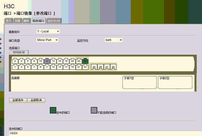 3. 添加被監控口(mirror port),被監控口一般是上聯口。