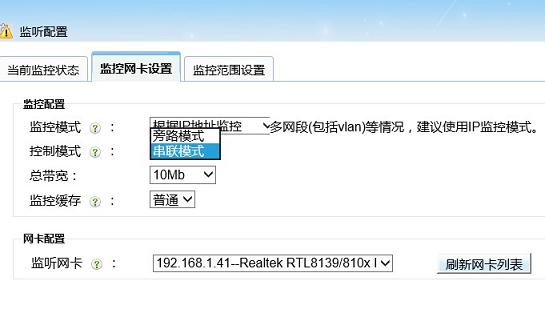 在WFilter里選擇串聯(lián)模式,監(jiān)聽內(nèi)網(wǎng)網(wǎng)卡,保存并應用新配置后即可實現(xiàn)監(jiān)控。
