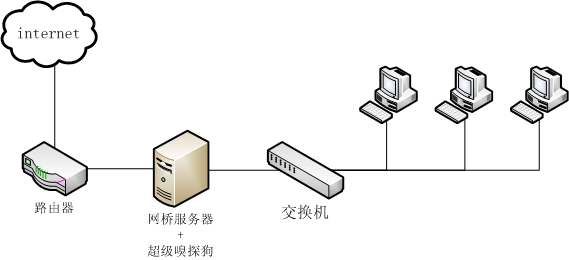 “網(wǎng)橋”使用兩塊網(wǎng)卡,可以透明串接在網(wǎng)絡中,不需要修改其他電腦的配置就可以對網(wǎng)絡進行監(jiān)控管理。